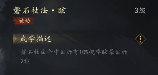 土系普攻【磐石杖法】用来眩晕敌方该普攻距离8米 0.67秒释放一次 有10%的概率眩晕敌方 攻击四次后还能为自己叠加数值为最大生命8%护盾