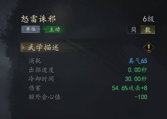木系技能【怒雷诛邪】推荐的原因也很简单:数值