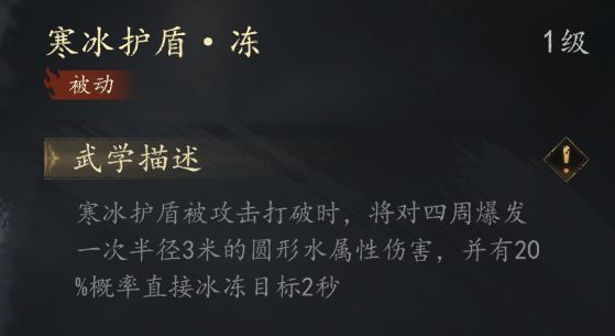 水系技能【寒冰护盾】的目的是利用破盾的概率冰冻达到控制效果
