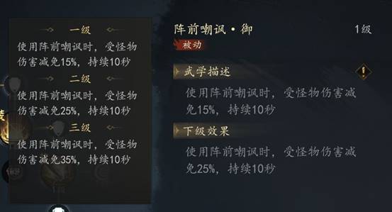 土系技能【阵前嘲讽】是非常关键的技能CD24s释放后获得15%最大生命值+技能等级*50+50的护盾值