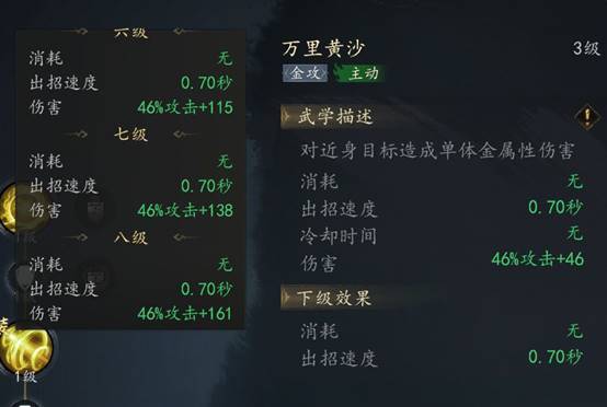 金系普攻【万里黄沙】为戟盟伤害最高的普攻 最高伤害为46%攻击+161