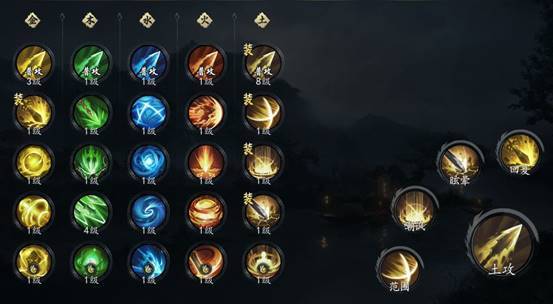 该技能组需要七个【金系秘笈】解锁,去掉了土系的鸡肋技能,采用金系技能弥补PVP的不足,且PVE强度未削弱。
