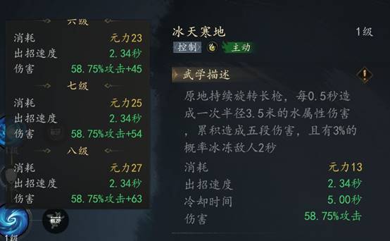 水系元力技【冰天寒地】是戟盟伤害最高的技能 最高可以造成293.75%攻击+315的伤害