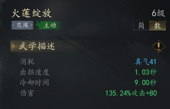 火系技能【火莲绽放】属于火系联动性技能,搭配其他火系技能达到最佳效果CD15秒 伤害为165.19%+135攻击 单独数据并不可观 主要机制体现在被动可以额外给拥有【灼烧】效果的单位额外造成100%攻击伤害的小AOE 也就是总伤害为165.19%+100%+135攻击的总伤害