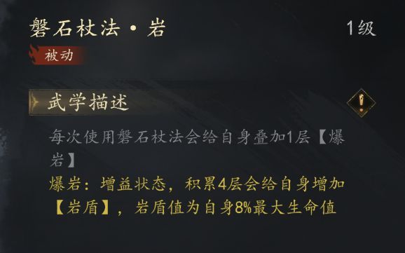 土系技能【苍龙翻江】需要在有【岩盾】状态下释放 有一定概率眩晕敌方技能攻击四次 每次概率10%