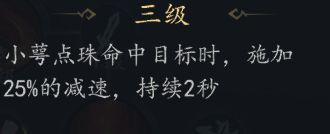 火系技能【小萼点珠】主要伤害技能一CD8秒,持续伤害4秒,实际上点了被动后是5秒,85次火伤,点满的总伤害为269.5%攻击力,伤害效果不错