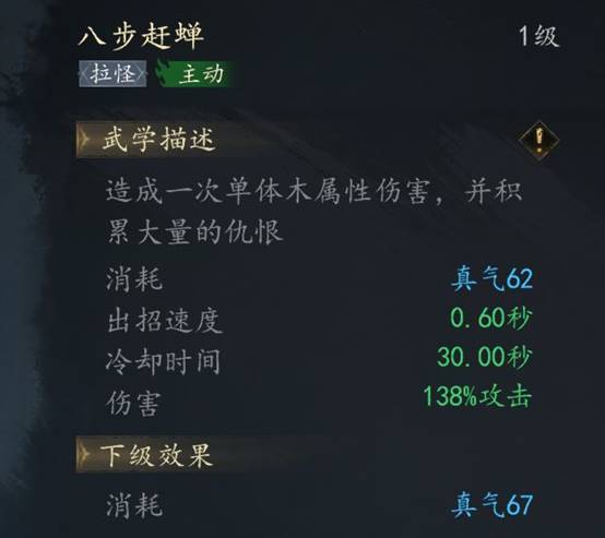 木系技能【八步赶蝉】可以让戟盟获得大量的怪物仇恨